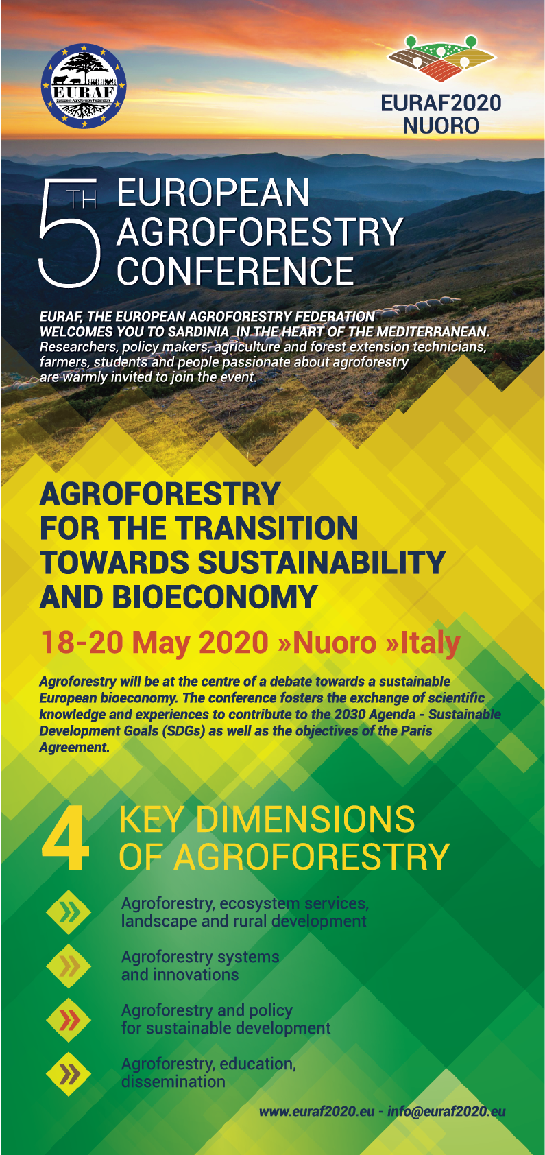 CALL FOR ABSTRACT della 5° CONFERENZA EUROPEA di AGROFORESTAZIONE, EURAF 2020: Agroforestry for the transition towards sustainability and bioeconomy