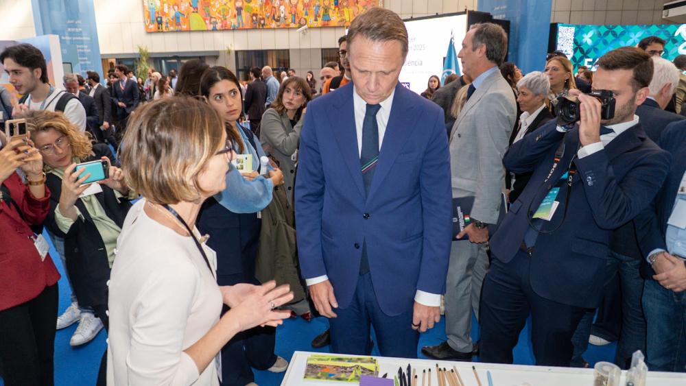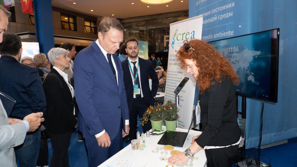 Il Ministro Francesco Lollobrigida visita lo stand del CREA all'Exhibition del Forum FAO