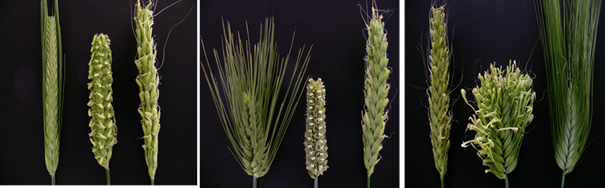 Nella foto alcuni esempi di mutazioni che determinano uno sviluppo alterato della spiga.