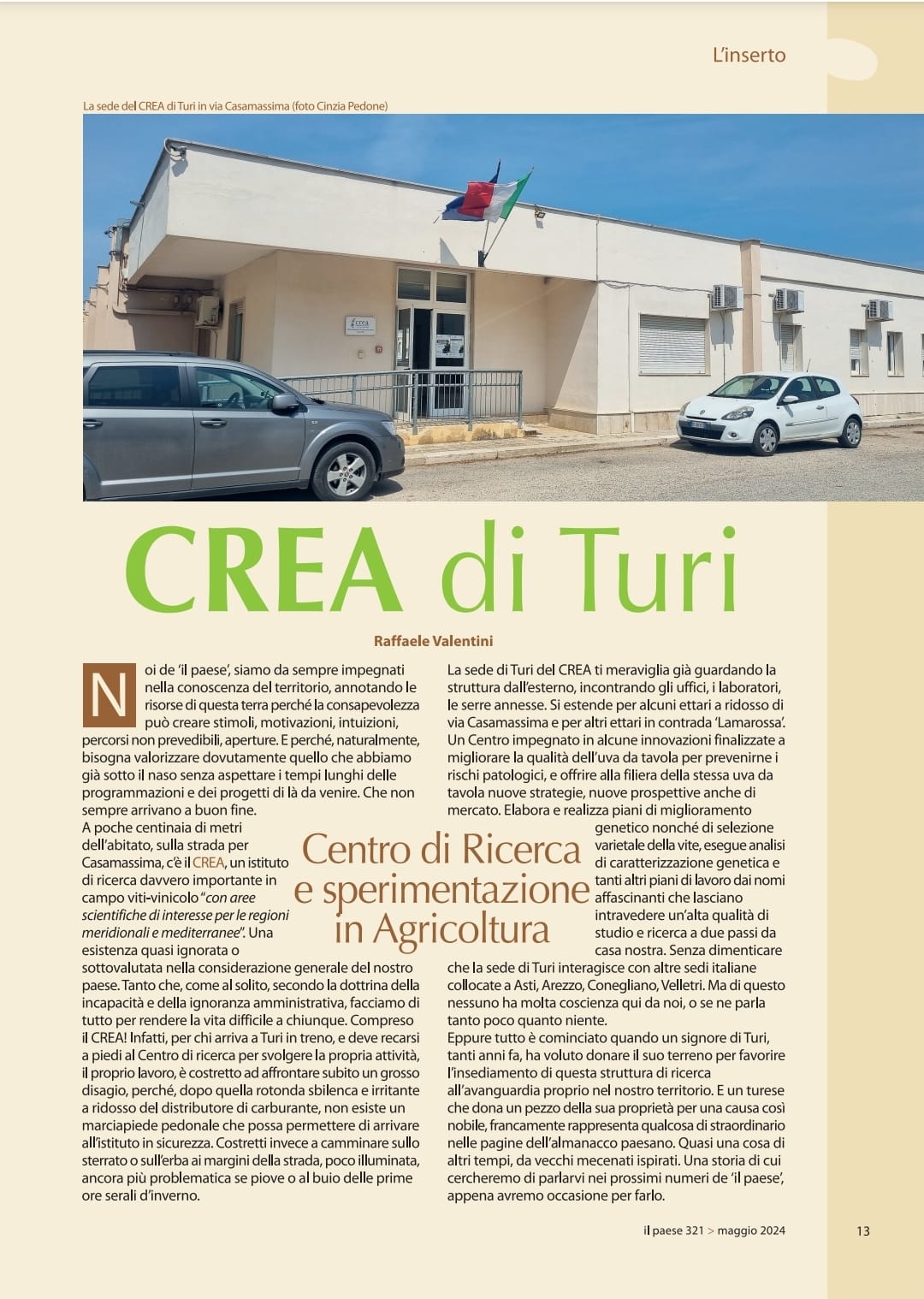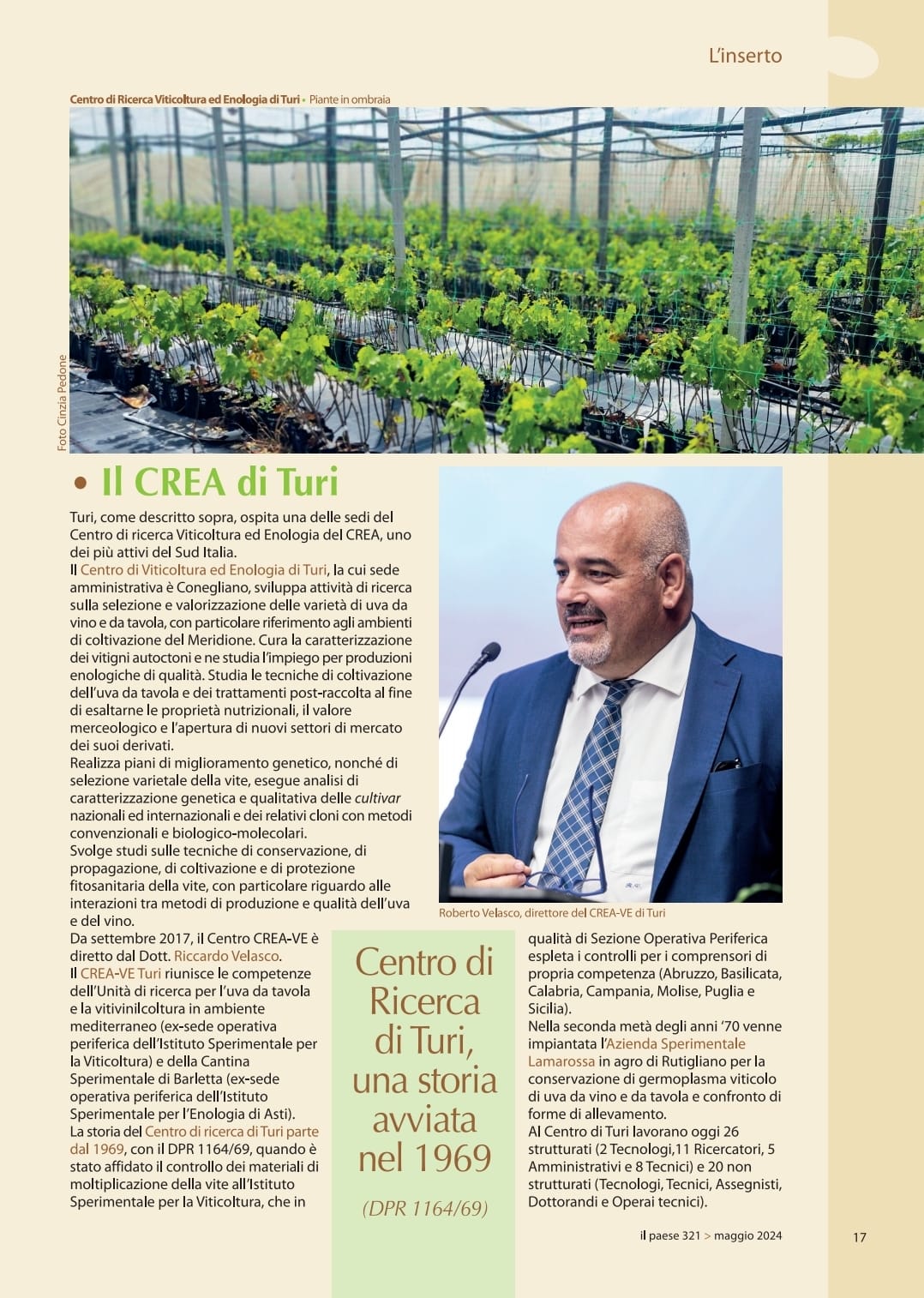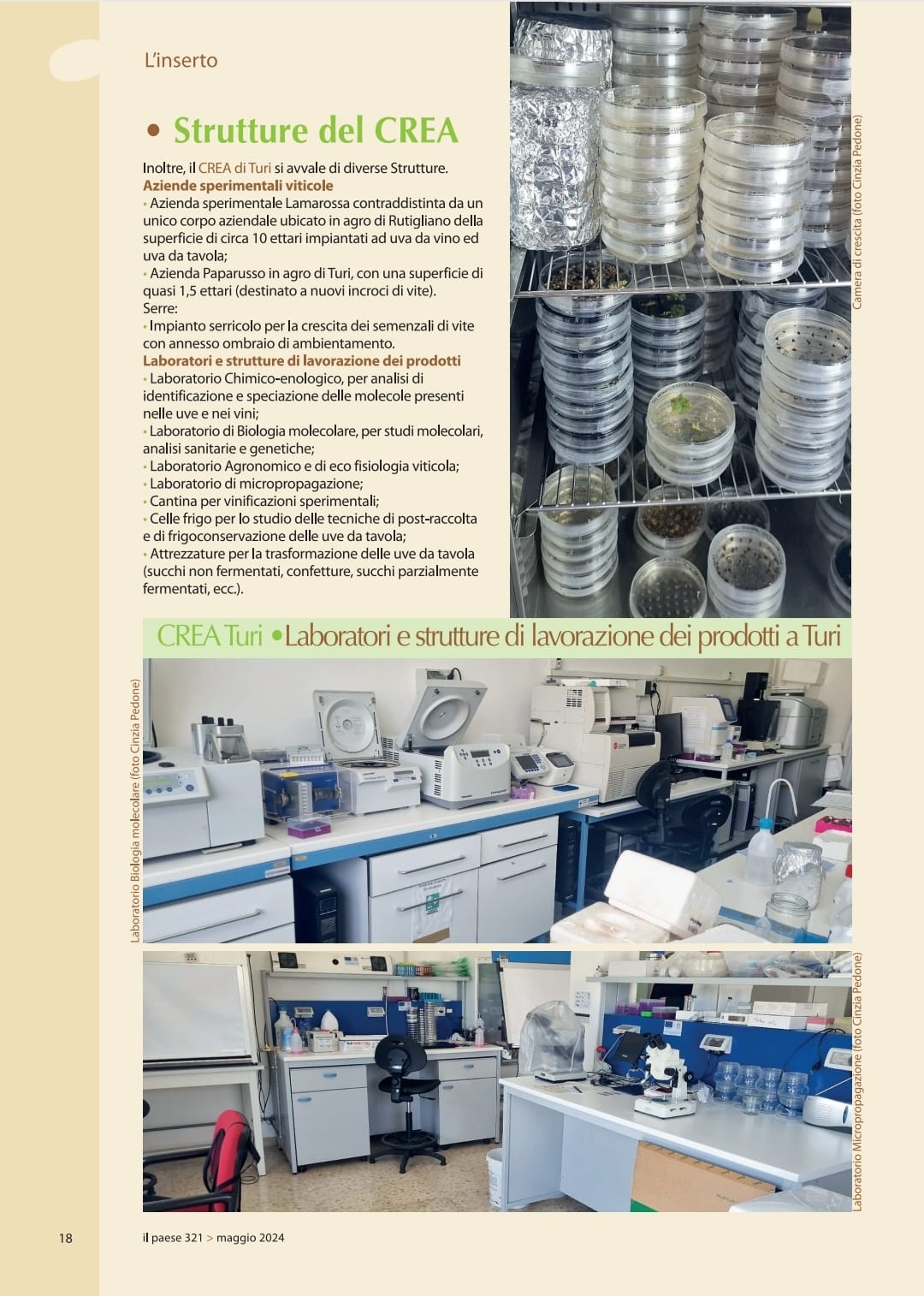 Si amplia la sede del CREA Viticoltura ed Enologia di Turi (Bari) con l’inaugurazione della nuova struttura di ricerca, arricchita da laboratori di enologia e di microbiologia enologica. Un supporto aggiuntivo in grado di far fare un salto di qualità alla ricerca sperimentale nell’enologia a Turi, unica sede del Centro CREA dedicato nel Sud d’Italia.