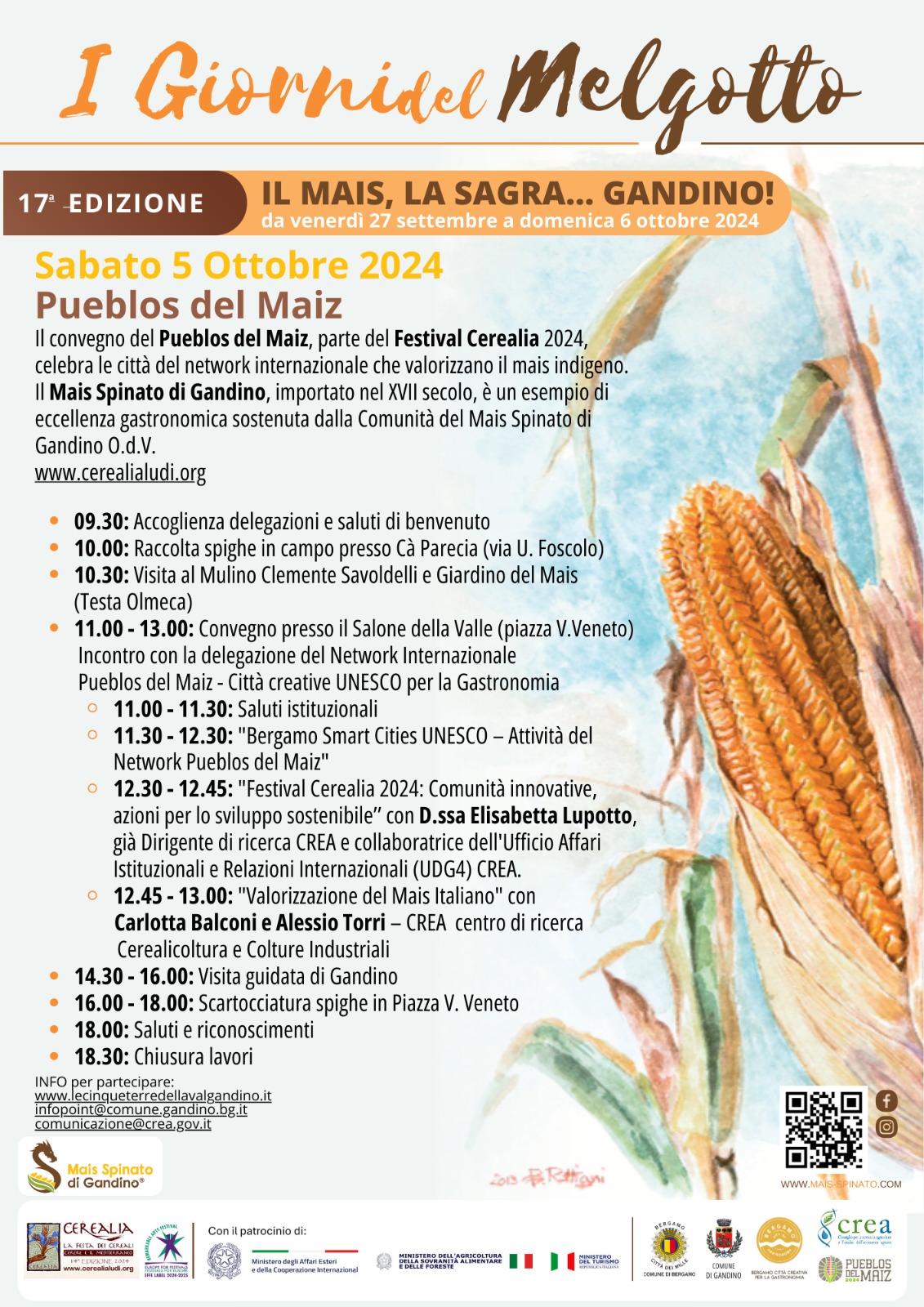 16:00h – 18:00h – evento dedicato alla comunità con la scartocciatura delle spighe di mais
