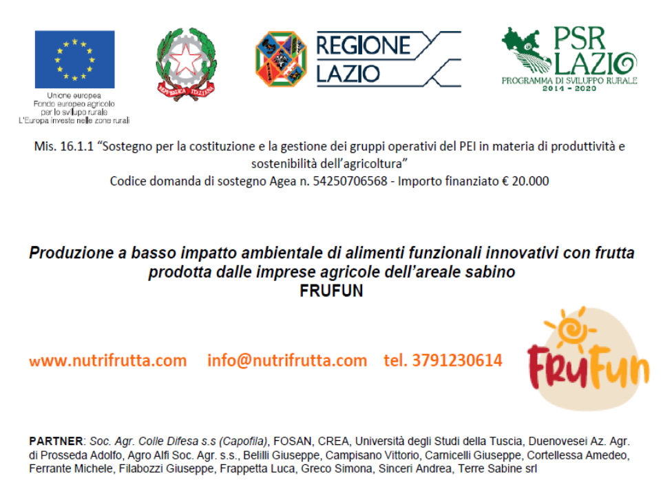 Il Gruppo Operativo FRUFUN è stato finanziato sui fondi del PSR Regione Lazio (Misura 16.1).
