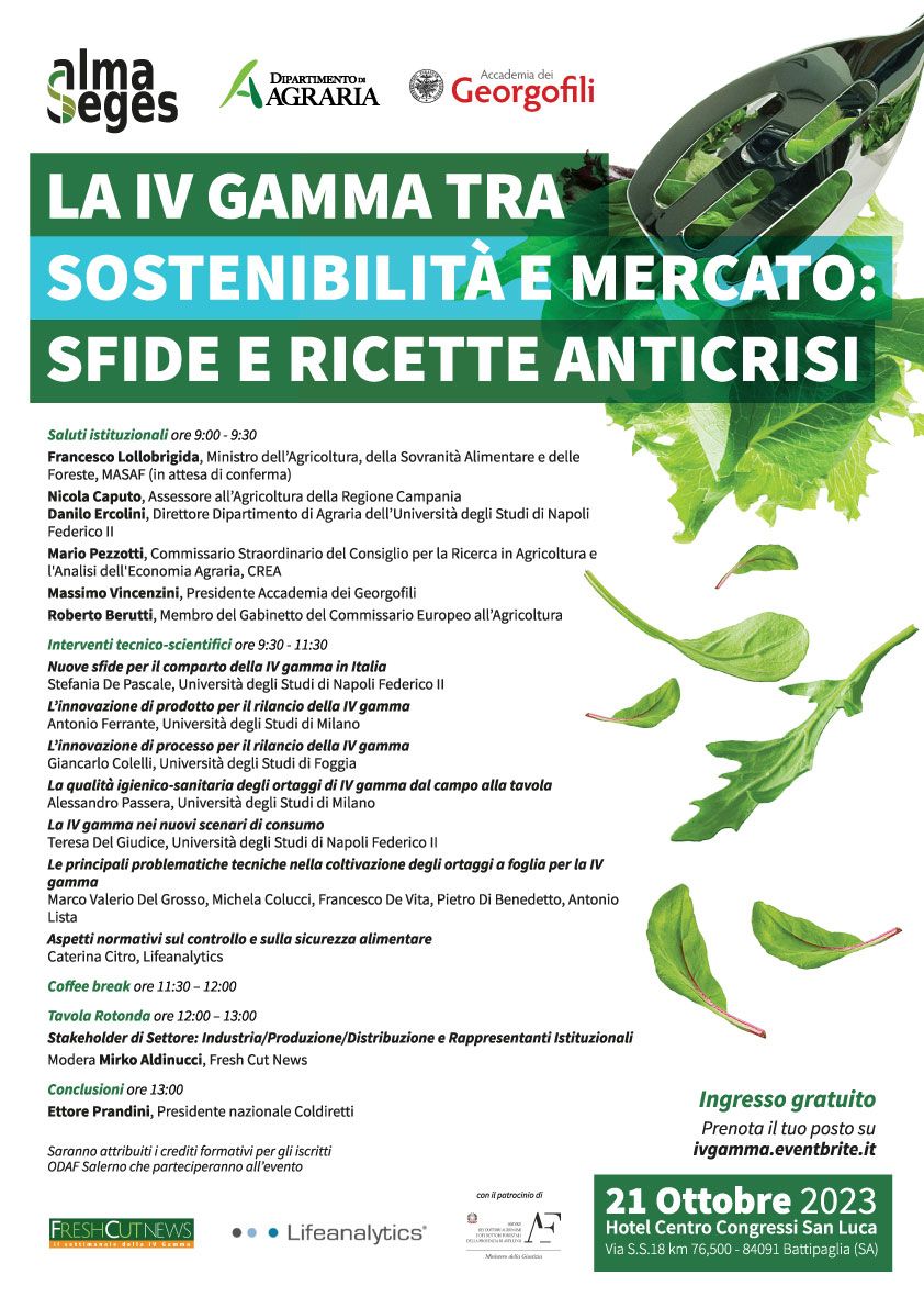 Il CREA sarà presente all’evento “La IV Gamma tra sostenibilità e mercato: sfide e ricette anticrisi” che si tiene a Battipaglia il 21 ottobre 2023.