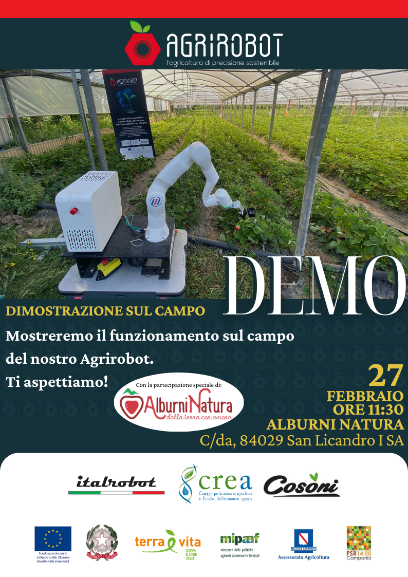 Il 27 febbraio 2024 presso l’azienda agricola Alburni Natura di Salerno si svolgerà una giornata dimostrativa per mostrare il funzionamento in campo di Agrirobot, un robot collaborativo per la raccolta della frutta, esempio dell’innovazione nella robotica applicata all’agricoltura.